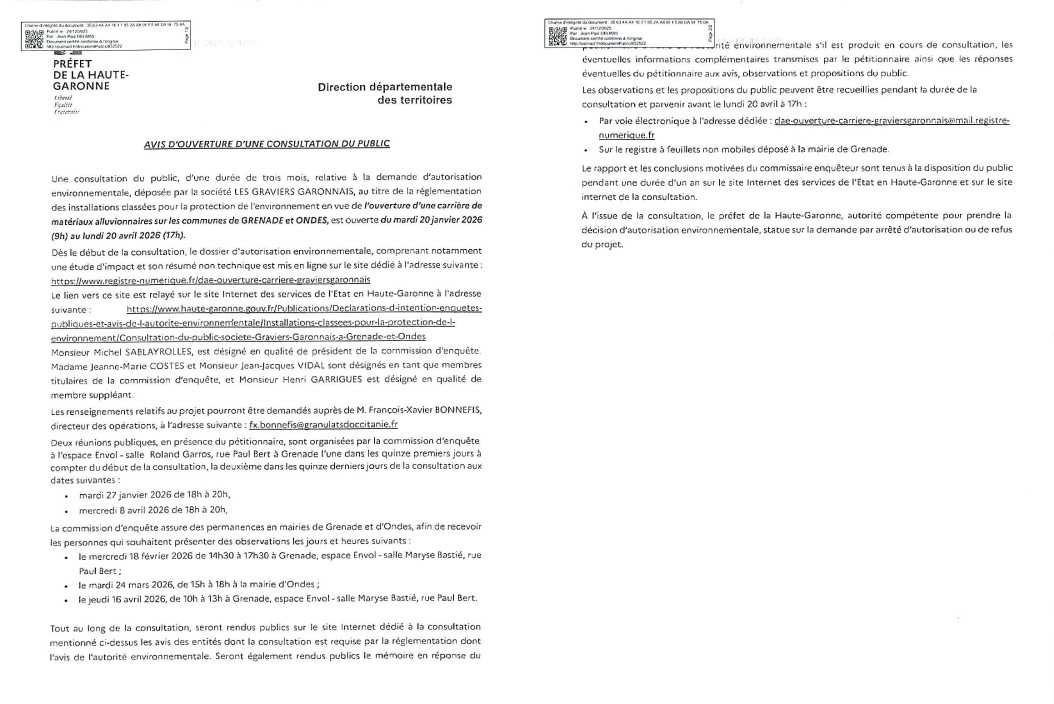 PREFECTURE DE LA HAUTE GARONNE - Avis d'ouverture d'une consultation du public
